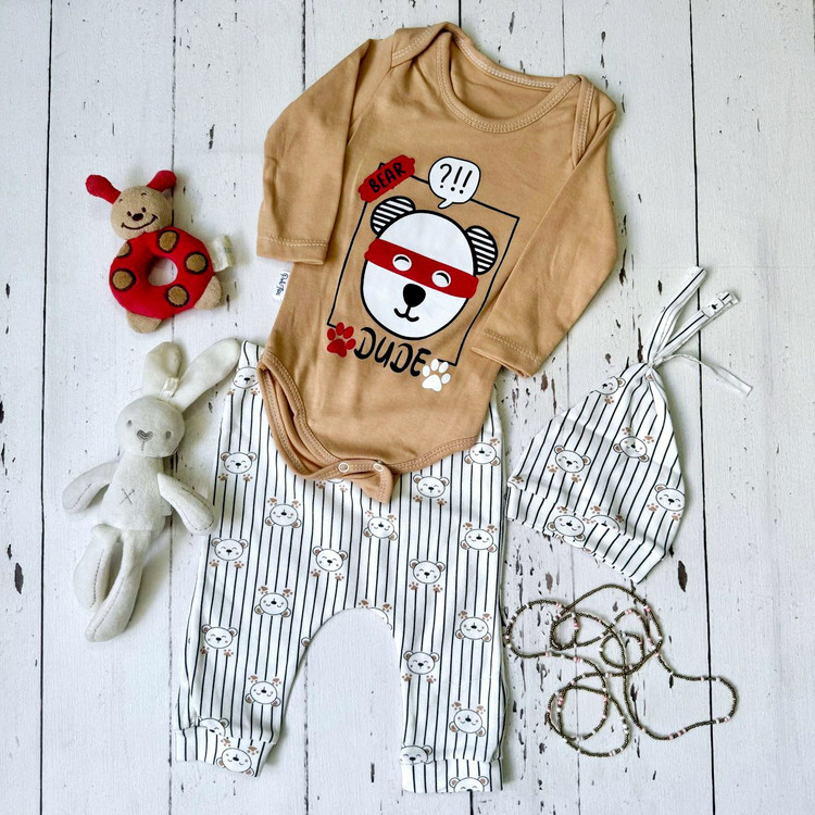 ست سه تکه شامل بادی، شلوار و کلاه (اورجینال ترک) کد۳۳۲۹