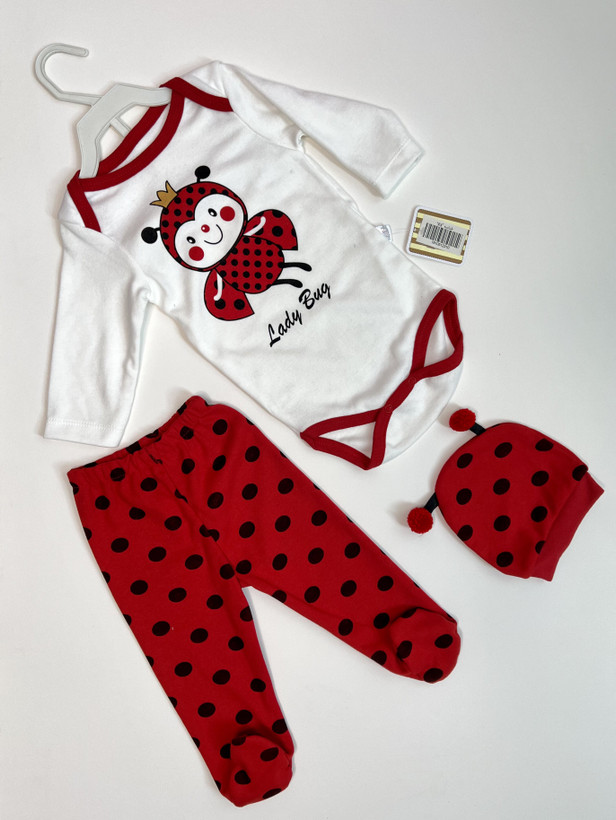 ست سه تکه نوزادی با طرح کفشدوزک (اورجینال ترک)