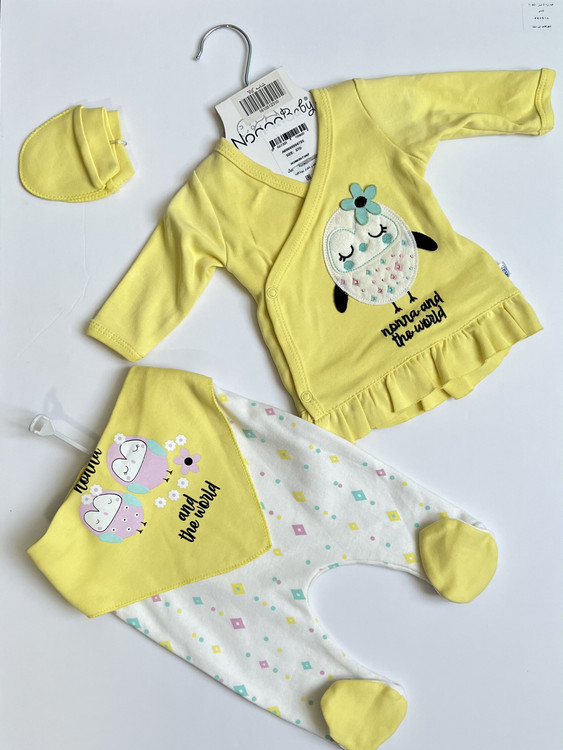 - ست شامل یک بلوز، یک شلوار، دستمال سر، پیشبند و یک جفت دستکش است